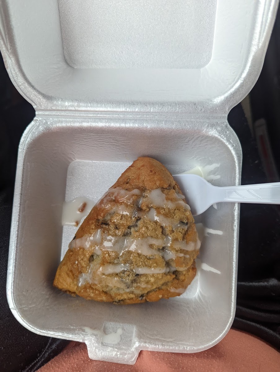 Visiting Longview and was looking for a good coffee place so I read the reviews myself to come here! Great coffee shop. I was hoping to go inside, but it was strictly drive thru! The staff was very helpful at the window. I tried a little bit of everything! They make pigs in the blanket daily and they taste homemade! The scones did not disappoint and were very most. They hit the sweet spot especially with the icing drizzle over the top! I highly recommend supporting this business!